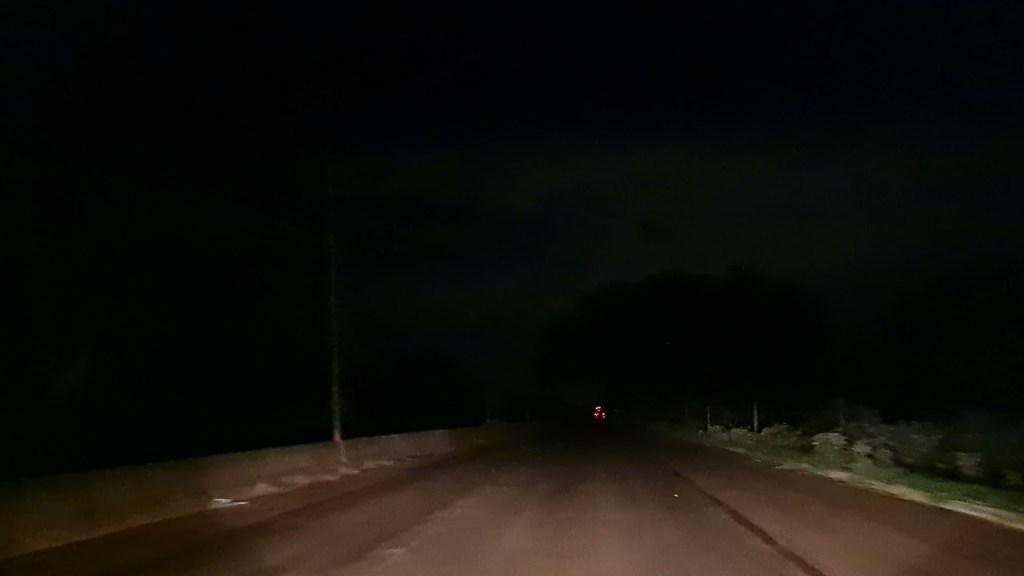 Nem mesmo as lâmpadas com luz solar foram capazes de acabar com a escuridão na rodovia entre Dourados e Itaporã