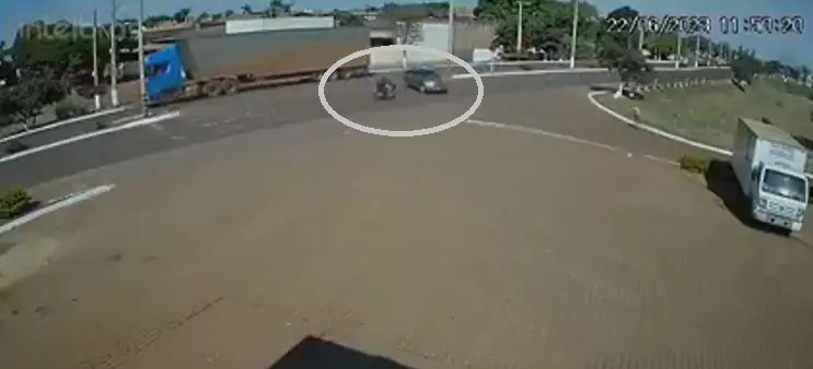 Conforme imagens de segurança, o enfermeiro seguia na motocicleta pela avenida, quando o veículo adentrou a via após fazer um contorno.