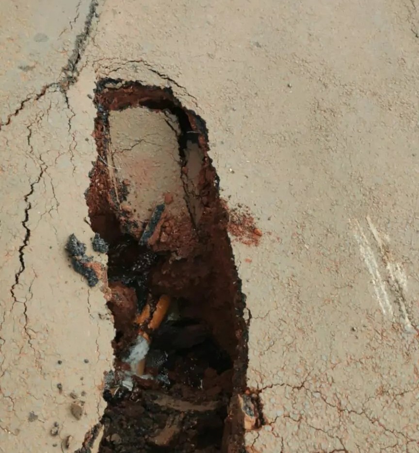 Pela imagem é possível ver que o asfalto cedeu após o rompimento de um cano de água. Não há informação até o momento dessa postagem se já ocorreu algum acidente no local.