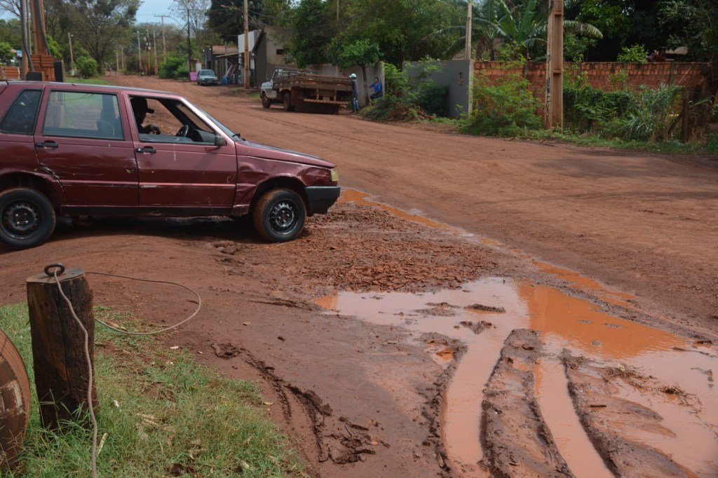 A lama já era de tempos antigos, mesmo após o cascalhamento a lama continuou na porta da borracharia, o que gera constrangimento para clientes e também para o proprietário.