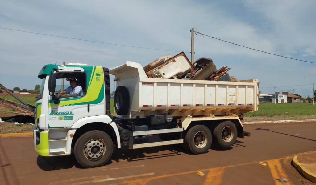 Trinta caminhões. Essa foi a quantidade de lixo retirada das ruas de Dourados na sexta-feira (1º) pela Agesul (Agência Estadual de Gestão de Empreendimentos de Mato Grosso do Sul), após o temporal que causou destruição na cidade.