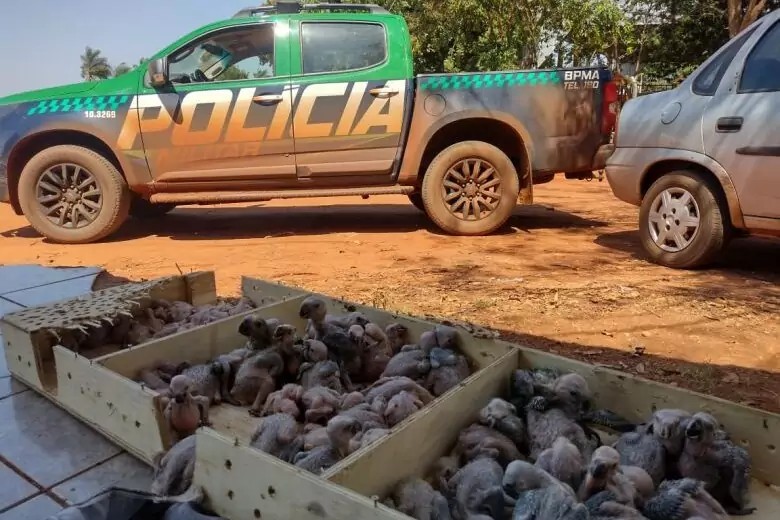 Durante fiscalização ambiental motivada pela Operação Bocaiúva, equipe da PMA (Polícia Militar Ambiental) de Batayporã abordou, casal com quase 80 filhotes de papagaio. O fato ocorreu na manhã de domingo (17), no entroncamento das rodovias MS-141 e MS-473, em Nova Andradina.