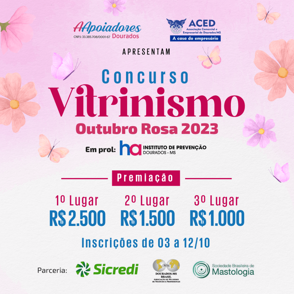 Neste mês dedicado à conscientização sobre o câncer de mama, a Associação Comercial e Empresarial de Dourados se une à Associação de Apoiadores do Hospital de Amor para lançar o Concurso de Vitrinismo “A prevenção é para o corpo, como a água é para um jardim: Essencial para Florir. Cultive-se!”, que tem como objetivo estimular empresas a decorarem suas vitrines, atraindo clientes, fomentando o comércio local e destacando a importância da campanha Outubro Rosa.