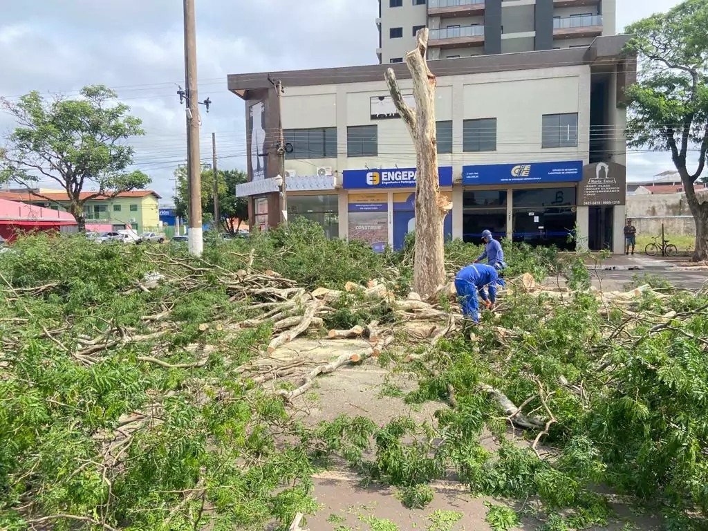Equipes da concessionária Energisa, de energia, também estão nas ruas, já que fios de alta tensão chegaram a romper após serem atingidos por árvores.