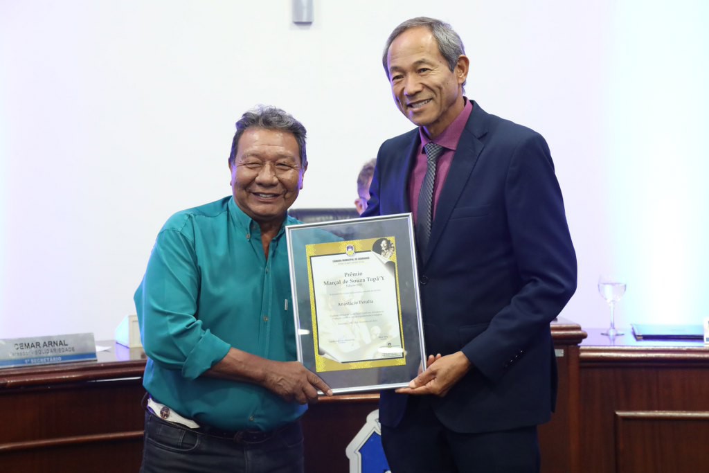 Liderança indígena foi reconhecida pela Câmara Municipal de Dourados! No intervalo da 41ª sessão ordinária, ontem (27), houve entrega do prêmio “Marçal de Souza Tupã’Y” de 2023 a Anastácio Peralta. A premiação tradicional foi criada pelo Decreto Legislativo 58/94 e é entregue anualmente às pessoas físicas ou jurídicas que tenham produzido conteúdos jornalísticos, artísticos, literários ou científicos sobre os povos indígenas.