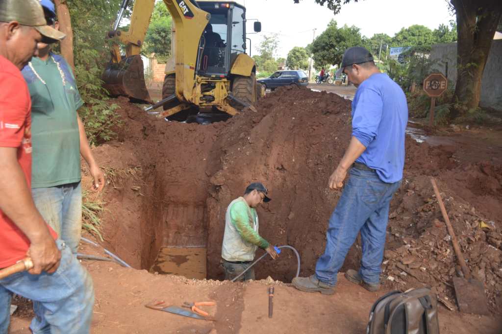 Só na primeira etapa de manutenção na jaguapiru 2 foram realizadas 8 ligações e 4 desentupimentos de redes, tudo com o apoio de uma máquina escavadeira disponibilizada por Itaporã.