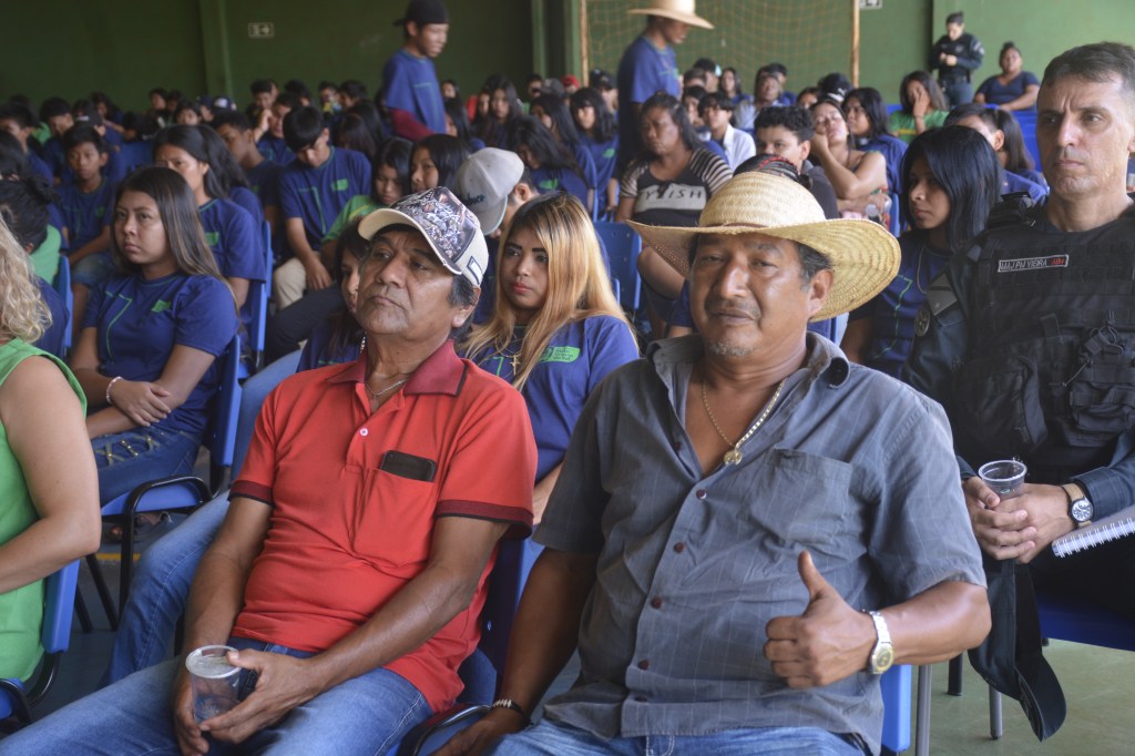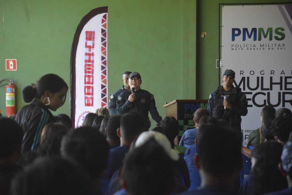 Confira as fotos da roda de conversa do programa mulher segura com o tema “combate à violência doméstica contra as mulheres”, nesta manhã de quinta -feira (21) na Escola Estadual Indígena Intercultural Guateka Marçal de Souza na aldeia Jaguapiru, com apoio do 3° batalhão PMMS, PROMUSE , CEPPM e 9° Batalhão PMMS. O evento contou com o capitão e vice – capitão da aldeia Jaguapiru, com Teodora de Souza – coordenadora da FUNAI de Dourados, Diego Araújo coordenador de direitos humanos e cidadania e coordenadora Andreia de política públicas de Dourados que foi representante do prefeito Alan Guedes e três conselheiras tutelares de Dourados.