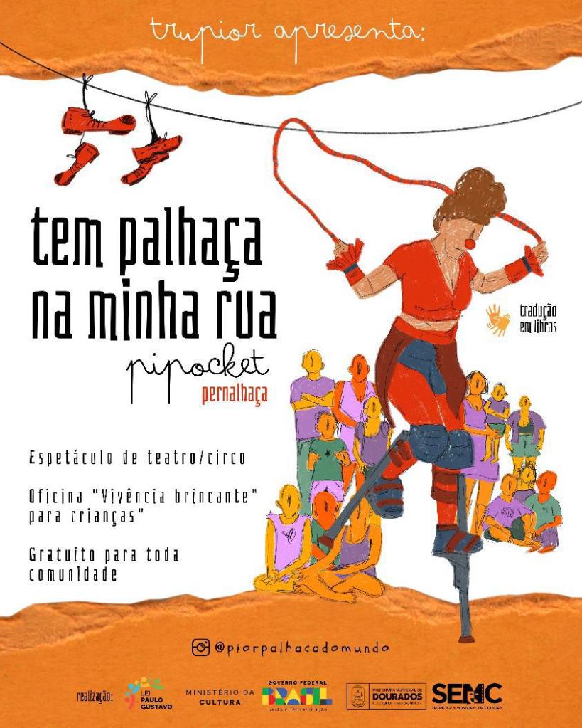 O projeto conta com a circulação do espetáculo de circo “Pipócket Pernalhaça” da TruPior e vivências brincantes de forma gratuita e com acessibilidade em libras, por três bairros periféricos da cidade de Dourados, tendo a rua como palco principal de fruição artística, em favorecimento ao direito de acesso à arte circense, cultura e lazer da população.