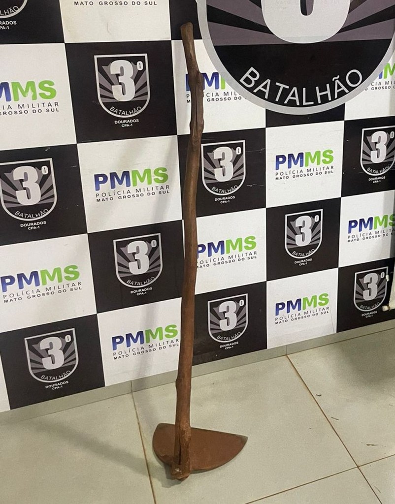 Uma mulher, de 53 anos, foi agredida com golpes de enxada na cabeça ontem (04). O suspeito, de 23 anos, foi preso em flagrante. Segundo a Polícia Militar (PM), o crime ocorreu em uma área de retomada indígena Yvu Vera.