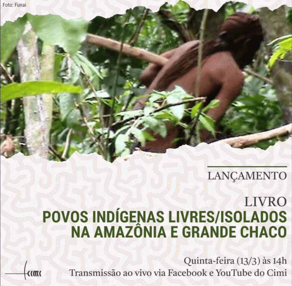 O Conselho Indigenista Missionário (Cimi) lança na próxima quinta-feira (13), com início às 14h (horário de Brasília), o livro “Povos Indígenas Livres/Isolados na Amazônia e Grande Chaco”. O lançamento será realizado na sede da Conferência Nacional dos Bispos do Brasil (CNBB), em Brasília (DF), e será transmitido ao vivo pelo canal de YouTube e pelo perfil do Facebook do Cimi. Na sequência haverá uma coletiva de imprensa. Organizado por Guenter Francisco Loebens e Lino João de Oliveira Neves, o livro é uma iniciativa da Equipe de Apoio aos Povos Livres do Cimi (Eapil/Cimi), com o apoio da Rede Eclesial Pan Amazônica (Repam).