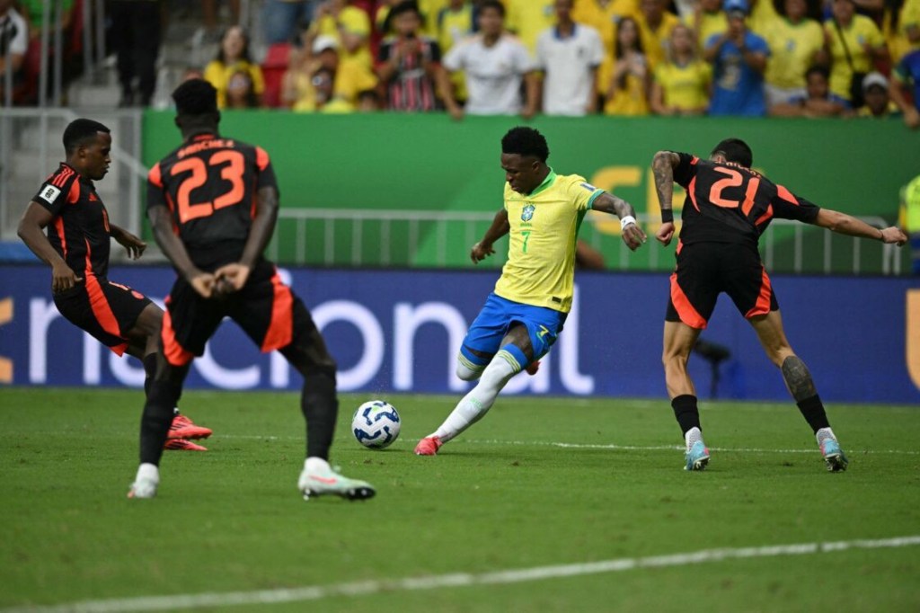 Foi sofrido e foi apenas nos acréscimos. Mas a vitória, enfim, veio. Jogando diante de 70 mil torcedores no Mané Garrincha na noite desta quinta-feira (20), o Brasil derrotou a Colômbia por 2 a 1, com o gol da vitória sendo marcado por Vini Jr. aos 53 do segundo tempo. Raphinha, de pênalti, e Luis Díaz marcaram os outros gols. Com o resultado, a Seleção salta para a 2ª colocação nas Eliminatórias para a Copa do Mundo de 2026.