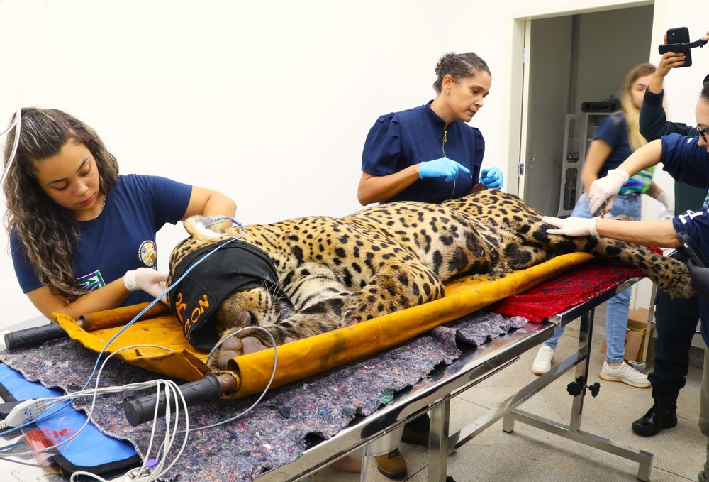 “O felino, após retornar da anestesia, está consciente, e não apresentou novos problemas de saúde – vômito, regurgitação – e de modo geral apresenta comportamento dentro da normalidade. A onça está em um recinto com grades, e seguro para receber o animal e para o adequado manejo realizado pelos veterinários”, diz o boletim médico.