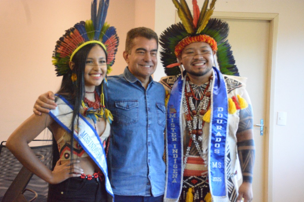 Durante a reunião, o prefeito Marçal Filho expressou seus elogios à beleza e à representatividade de Maria Eduarda, da etnia Terena, e de Junior Sanches, da etnia Kaiowá, ambos moradores da aldeia Jaguapiru. Ele também justificou sua ausência na final do concurso, realizado no último sábado(26), devido a um problema de saúde.