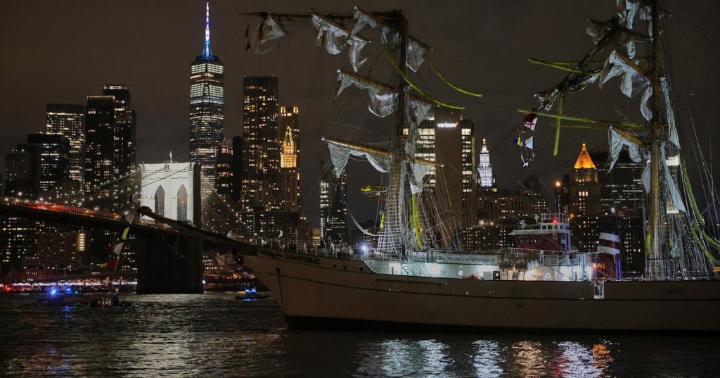 Um navio de treinamento da Marinha do México bateu neste sábado (17) na ponte do Brooklyn, em Nova York. Dois tripulantes morreram.