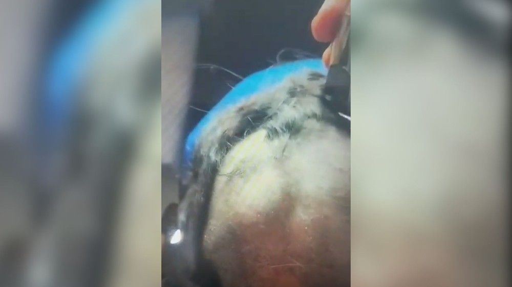 Na casa do suspeito, ela afirmou que foi forçada a sentar no sofá e permanecer em silêncio enquanto raspava todo o seu cabelo, filmando a ação.