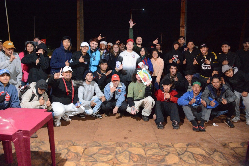 A Aldeia Jaguapiru vibrou com a energia do hip-hop na noite de ontem, (31), com a realização da primeira batalha de rima. O evento, que marcou um novo capítulo cultural na aldeia, reuniu 11 talentosos MCs e contou com a presença especial de Clemerson Batista, um dos vocalistas do renomado grupo de rap indígena Brô MC’s.