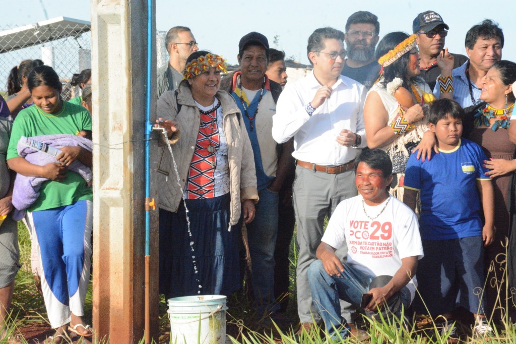 “Eu fico muito feliz de vir aqui hoje e a gente poder abrir uma torneira e ter uma água boa, uma água limpa para vocês. Eu sei que no ano passado teve uma batalha muito grande aqui para lutarem pela água. A gente viu o apelo de vocês e agimos rapidamente para dar uma resposta”, afirmou a ministra Sonia Guajajara, referindo-se ao repasse de R$ 575 mil à UFGD para a perfuração de 20 poços.