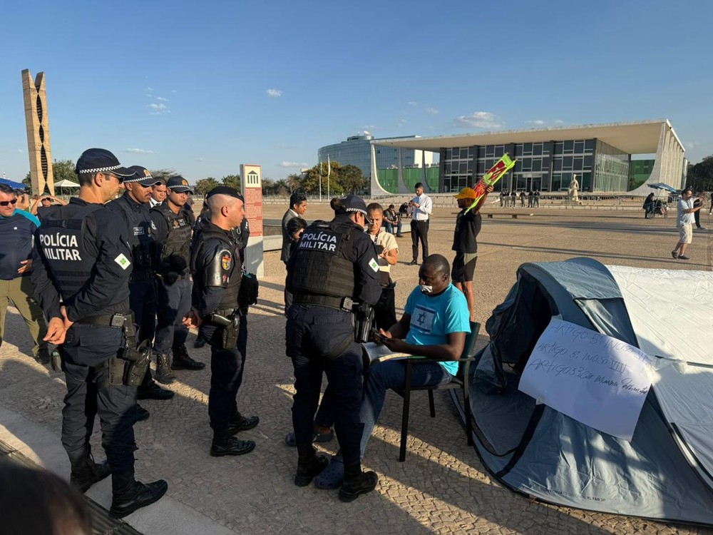 Na sexta-feira, Hélio Lopes levou uma barraca à praça e anunciou uma “greve de silêncio”, com esparadrapo na boca, em protesto contra decisões do STF. O ato atraiu outros parlamentares aliados, como o deputado Coronel Chrisóstomo (PL-RO), e motivou reforço da segurança, com presença da Força Nacional, PM do DF e equipes do DF Legal.