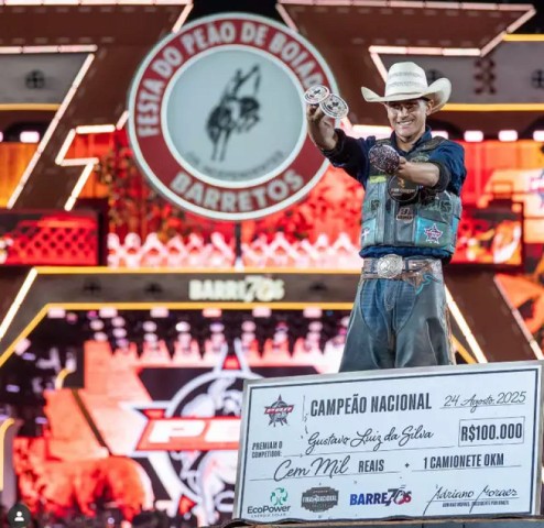 O peão sul-mato-grossense Gustavo Luiz da Silva, de apenas 19 anos, fez história ao conquistar o título do Campeonato Brasileiro de Montaria em Touros da PBR (Professional Bull Riders), realizado durante a 70ª Festa do Peão de Barretos, no interior de São Paulo. Natural de Inocência, região norte de MS, o jovem talento assegurou o título antes mesmo da grande final da competição.